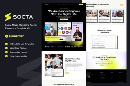 Sosyal medya pazarlama ajansı için 17+ şablonlu tema.